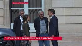 : Vidéo Les premières images des ex-otages en Iran Cécile Kohler et Jacques Paris, accueillis par Emmanuel Macron à l'Elysée après leur libération.